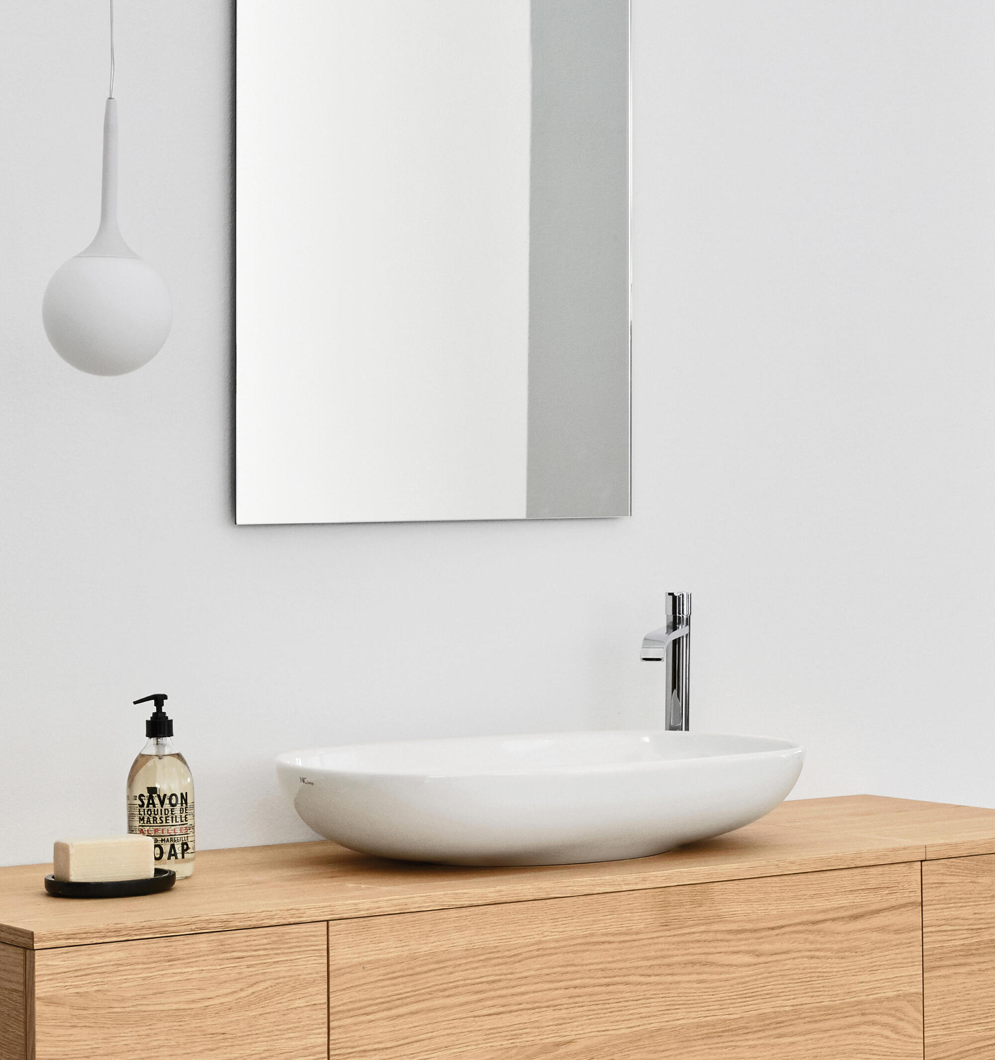 Накладная раковина без перелива NIC Design Milk Light Washbasin — версия из глянцевой или матовой керамики с выразительными низкими бортиками.