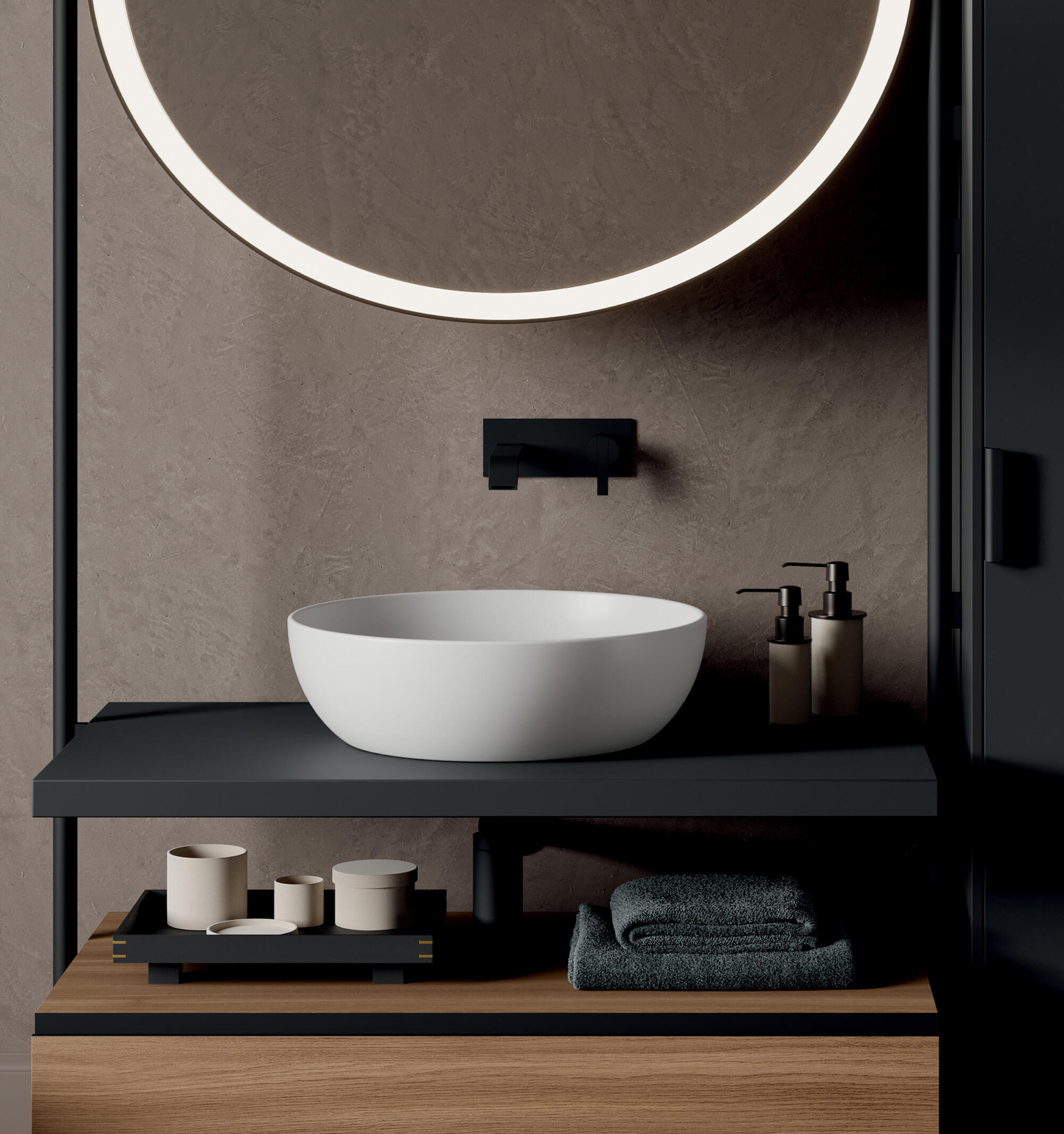 Минималистичная накладная раковина без перелива NIC Design Ovvio Bacinella Washbasin с мягкими формами поможет создать в ванной комнате спокойную расслабляющую атмосферу. Раковина доступна в двух размерах: Ø38x14, Ø42x14.