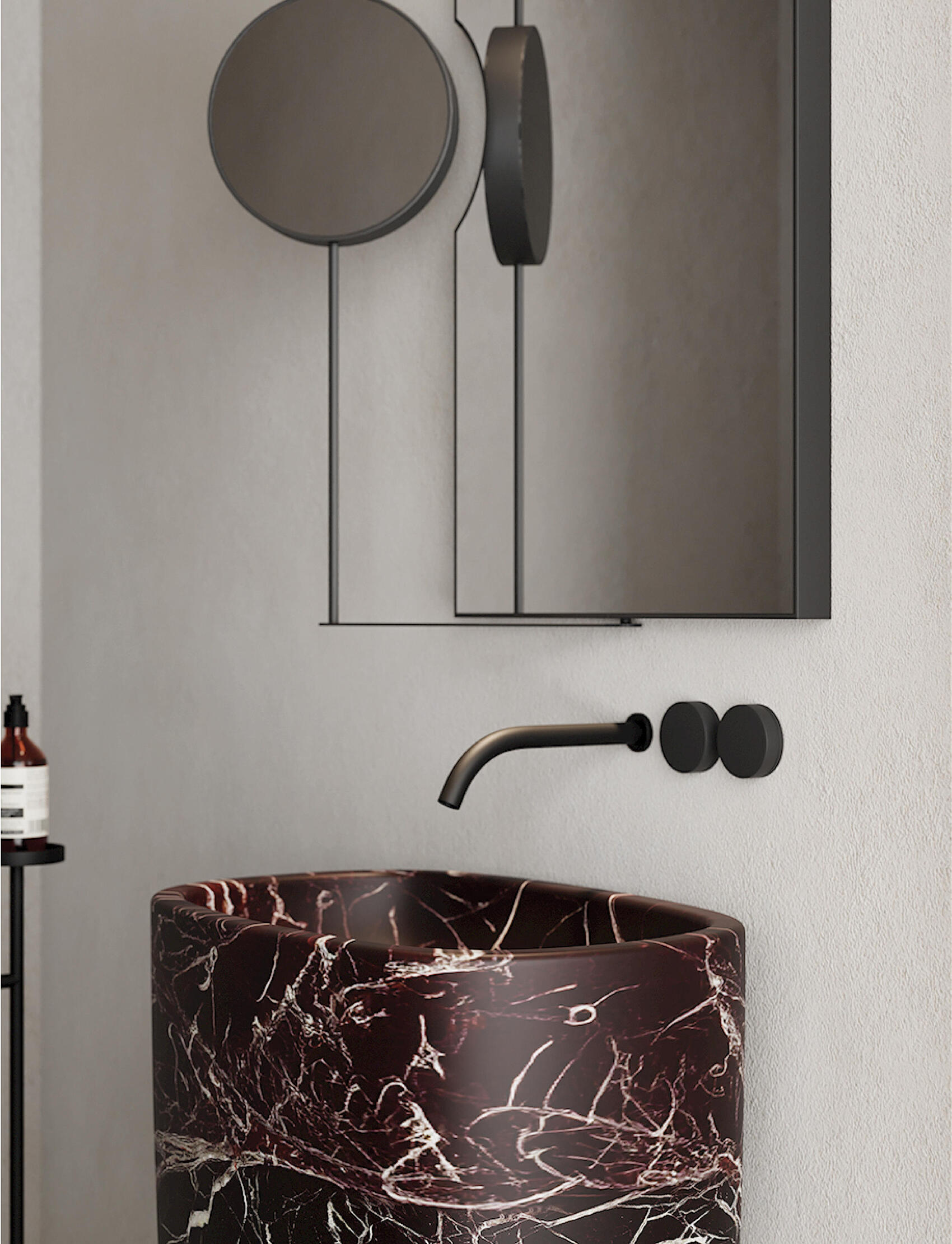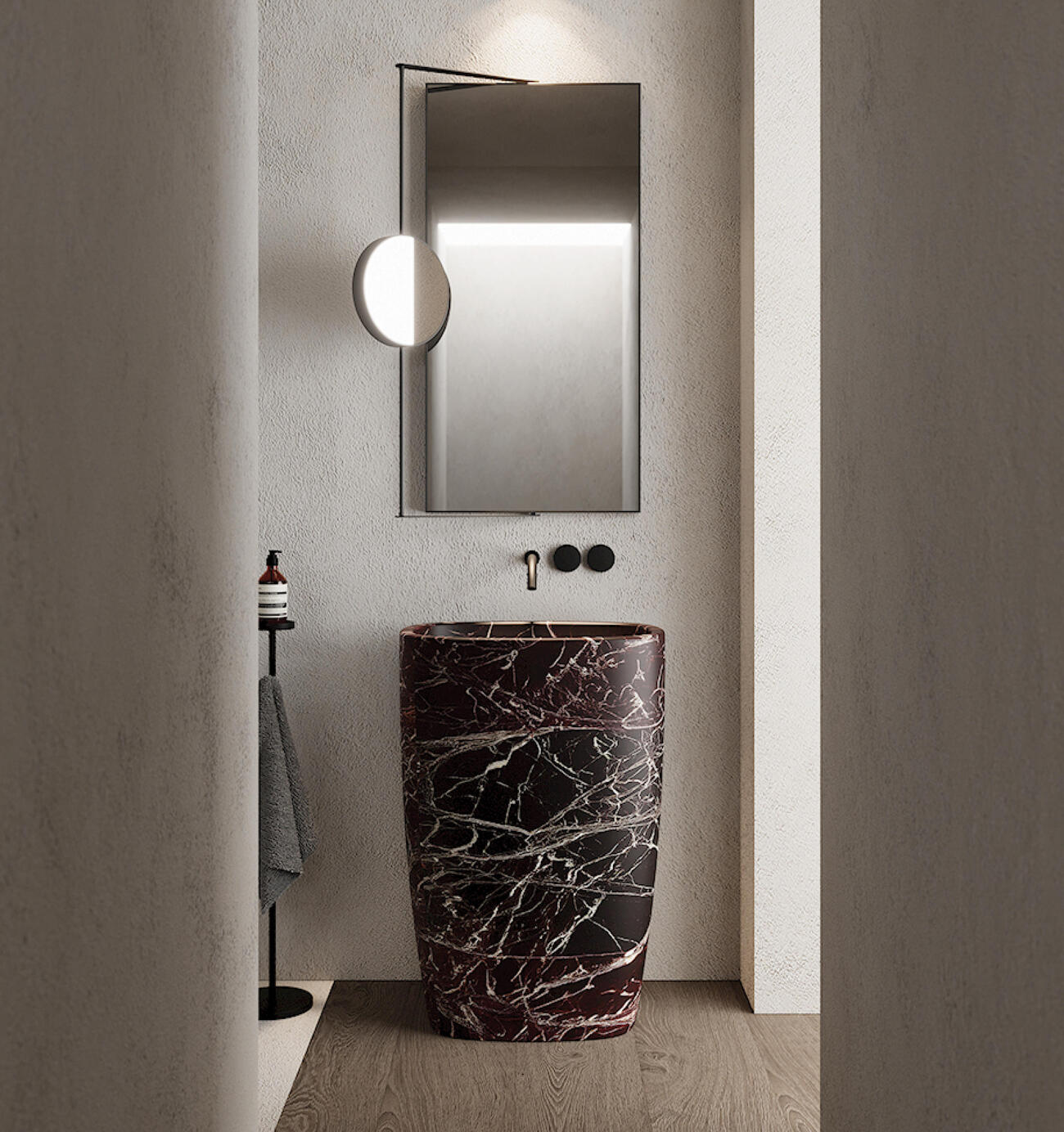 Отдельностоящая раковина со сливом в пол NIC Design Milk Freestanding Marble Washbasin Floor-Outlet Waste with Adjustable Plug — скульптурная модель, для изготовления которой используется натуральный мрамор с естественным рисунком.