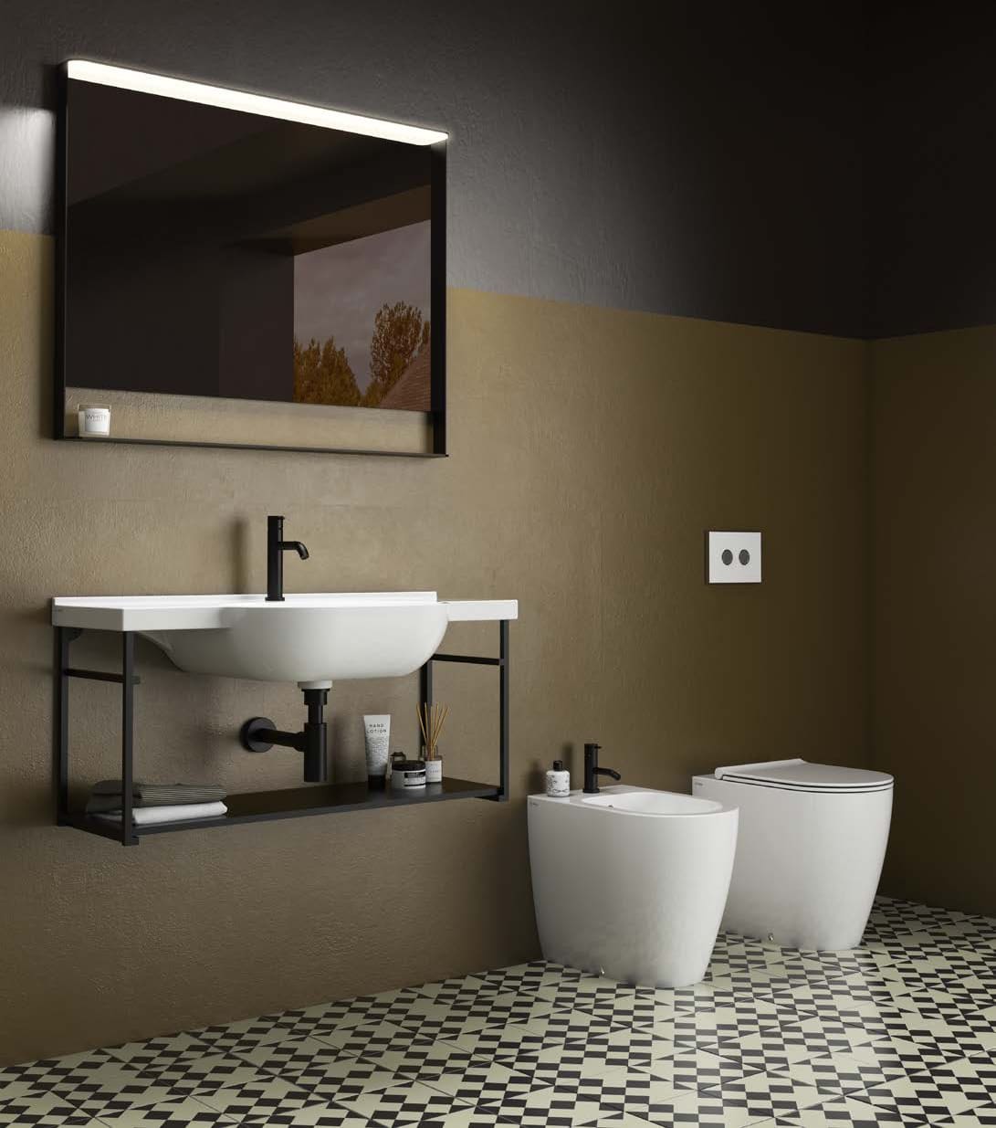 Подвесная раковина Ceramica Globo Mode имеет максимально удобную для использования глубокую чашу. Модель оснащена широкими бортиками, на которых можно с комфортом размещать необходимые аксессуары. Раковину можно установить на подвесную или напольную консоль элегантного чёрного оттенка.