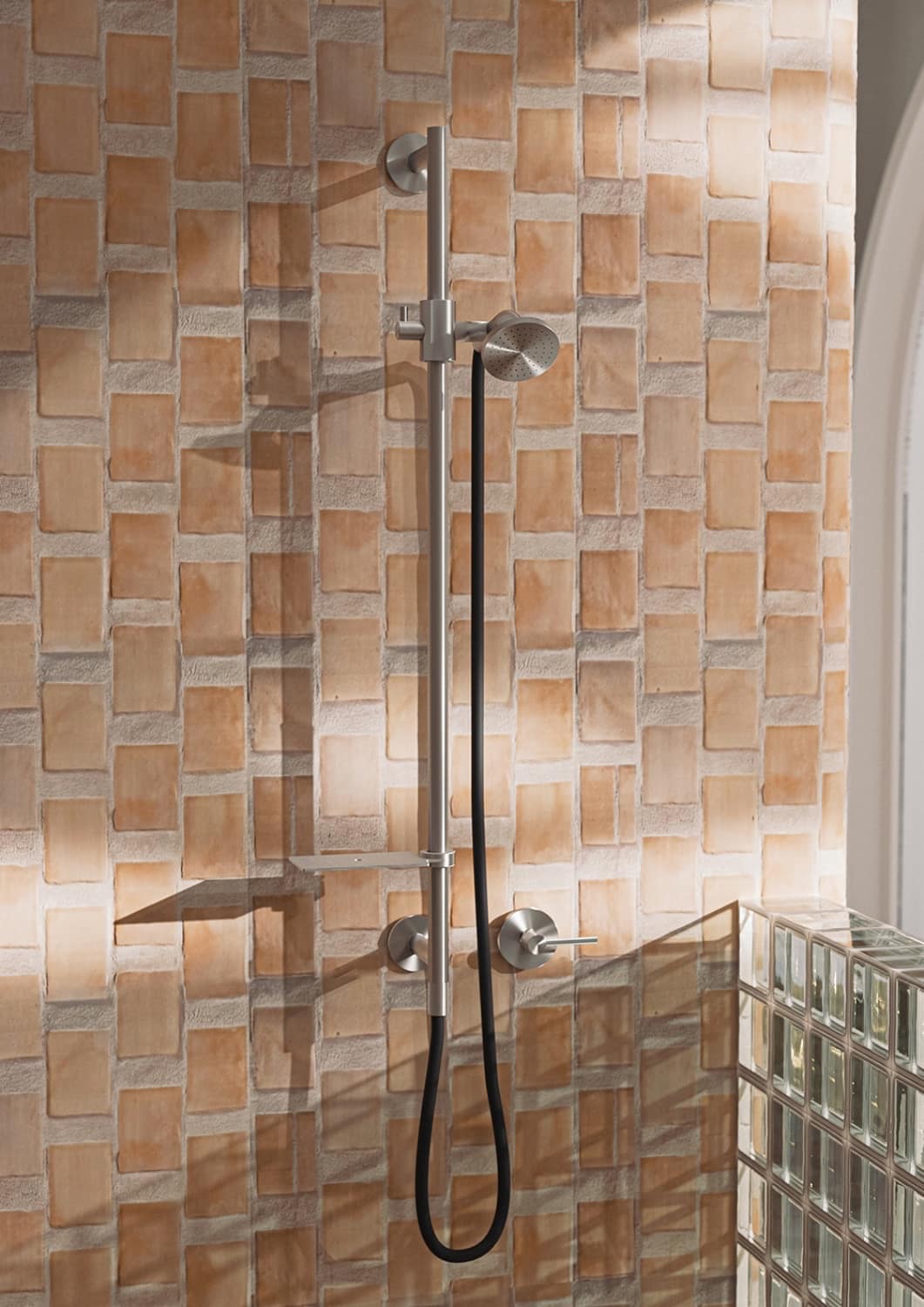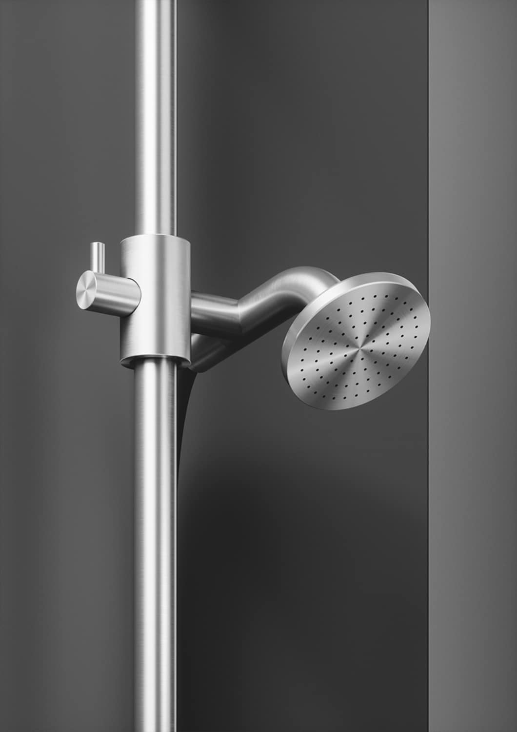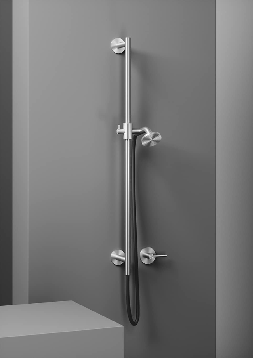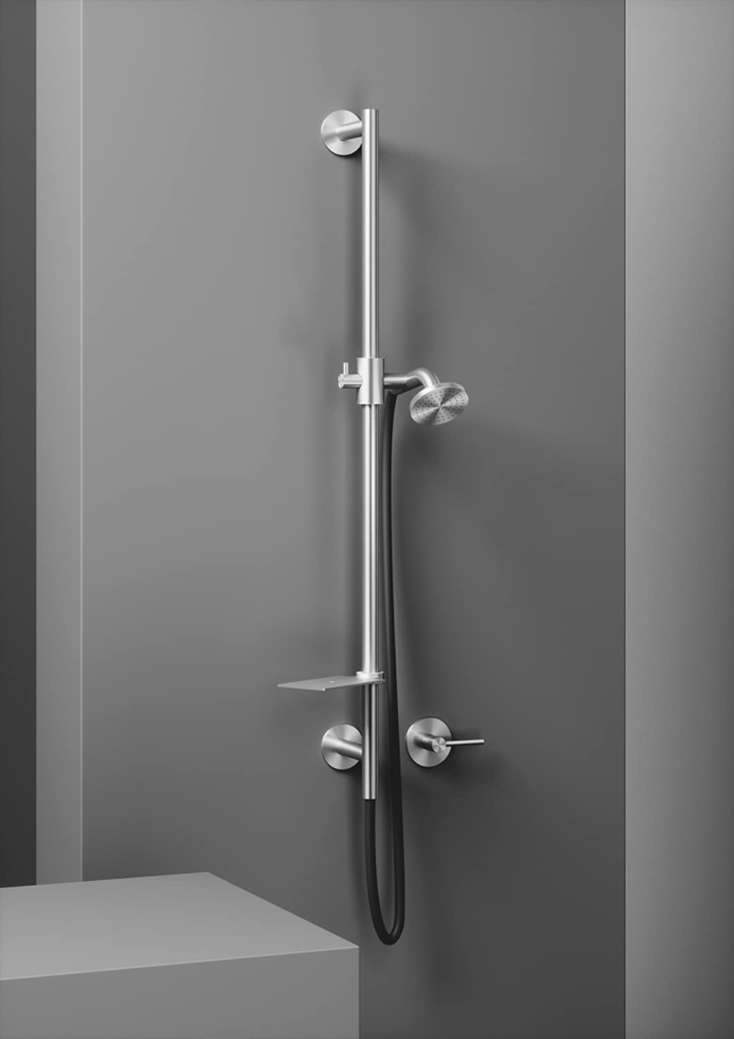 Душевая штанга Quadro Design FFQT TS21.00 поставляется с лейкой, которая держится на подвижном креплении.