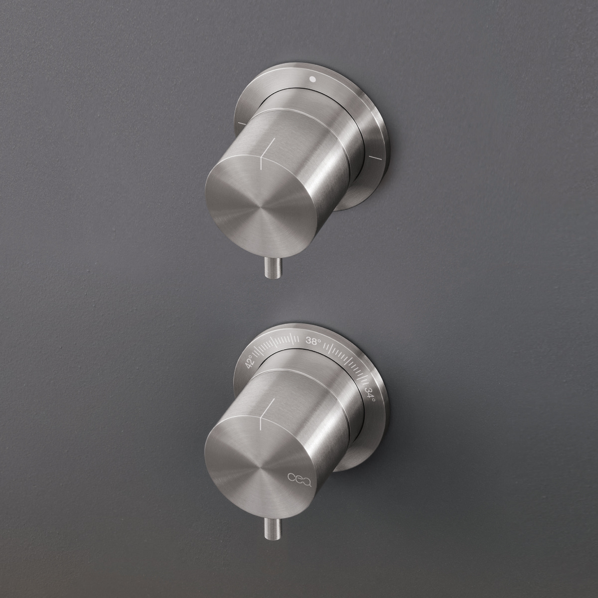 Настенный термостатический смеситель для душа с 2/3-ходовым переключателем Cea Design MIL120 имеет возможность скрытой установки. Смеситель из стали с низким содержанием углерода устойчив к воздействию внешних агентов (воды, воздуха). Простой дизайн MIL120 впишется в любой интерьер ванной комнаты.