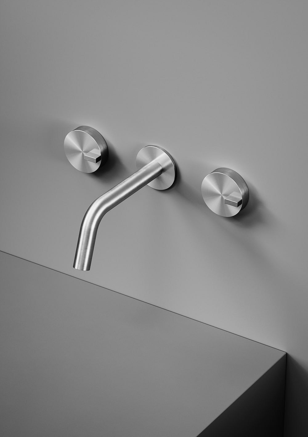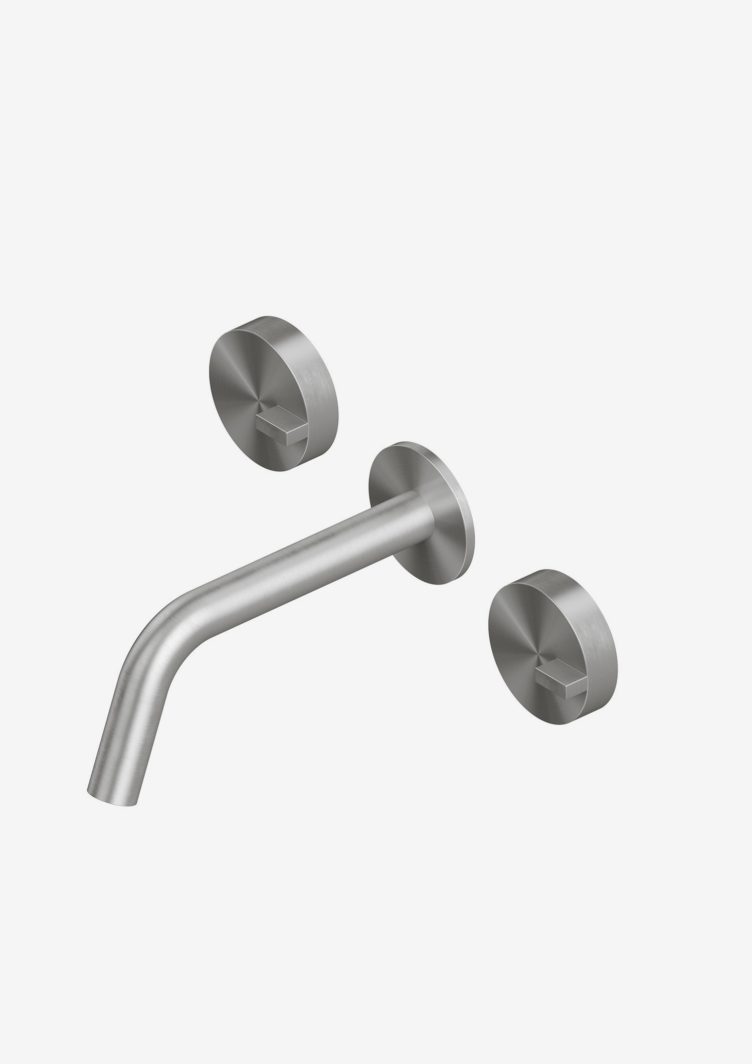 Смеситель из стены Quadro Design Q 18 10 V / 18 11 V представлен в двух размерах и трёх отделках стали. Он переключается двумя вентилями: один отвечает за температуру, другой — за напор. Поставляется с внутренними комплектующими.