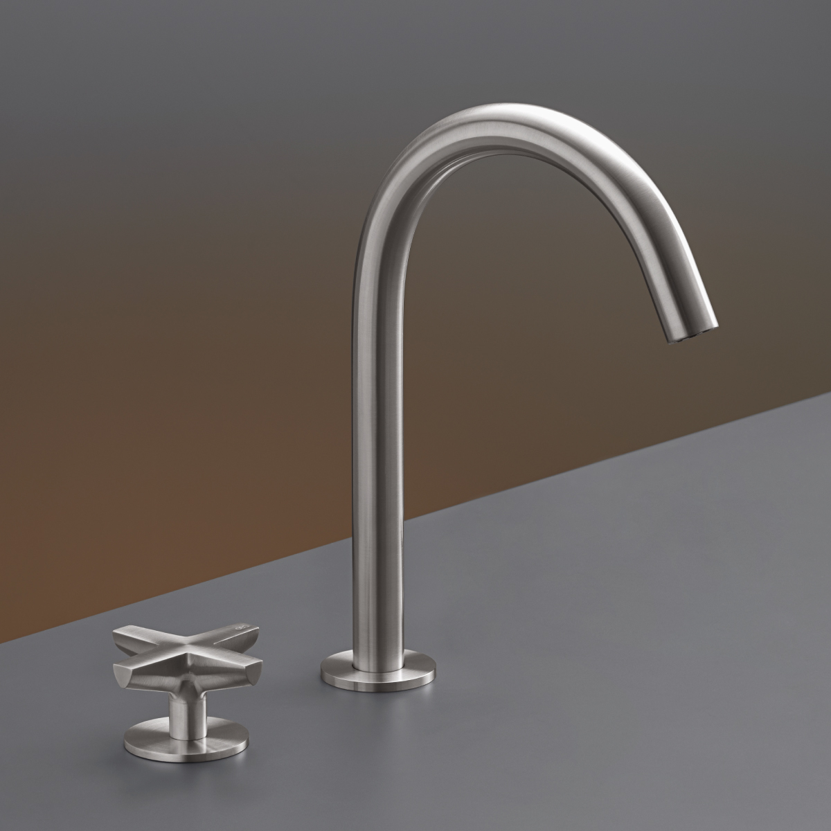 Прогрессивный смеситель на два отверстия с поворотным изливом Cea Design CRX02 — удлинённый вариант модели CRX01. CRX02 выполнен из экологичного и гигиеничного стального сплава. Все детали смесителя проходят сложный процесс изготовления на токарном станке.