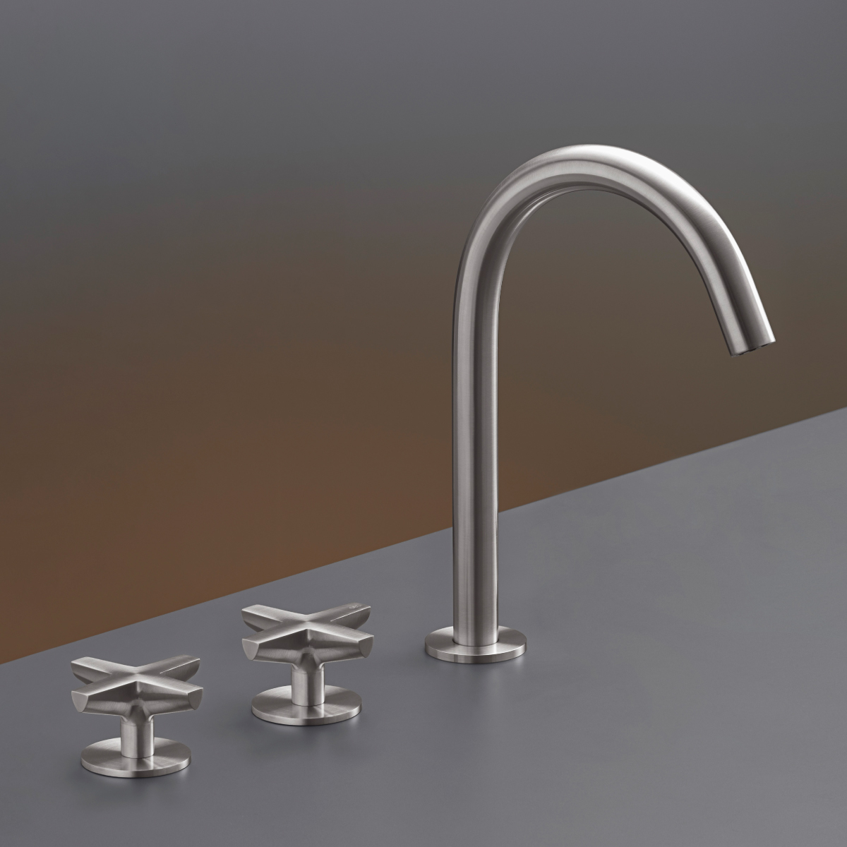 Смеситель на три отверстия с поворотным изливом Cea Design CRX04 — это вариант с двумя запорными клапанами для холодной и горячей воды. Смеситель изготавливается с использованием современных технологий в обработке металла. На выбор доступно шесть различных отделок.