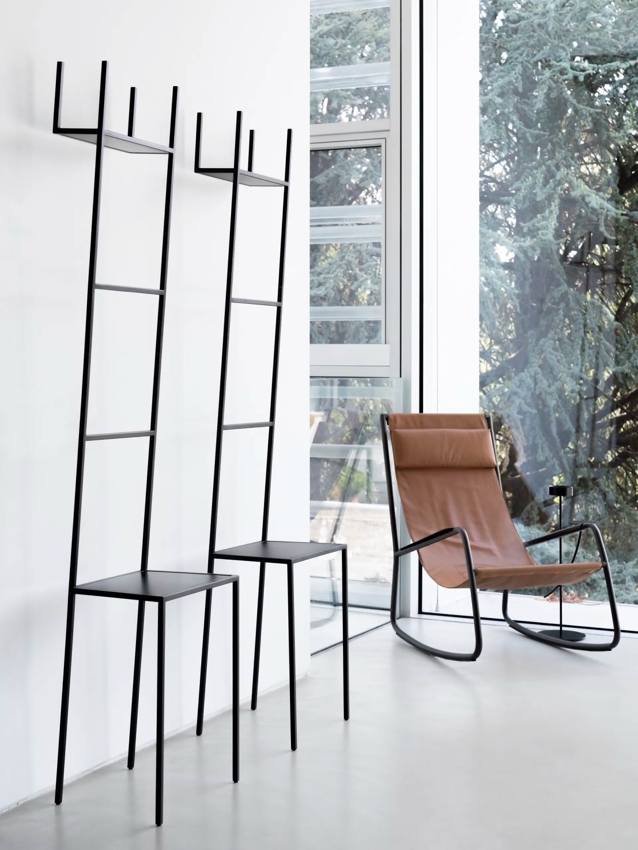 Напольная вешалка Living Divani Mate бросает вызов традиционным представлениям о мебели для хранения. Облик модели напоминает графичный набросок стула. Высокий каркас вешалки способен адаптироваться к любым нуждам, став подставкой для одежды, необычным столиком или импровизированной полкой.