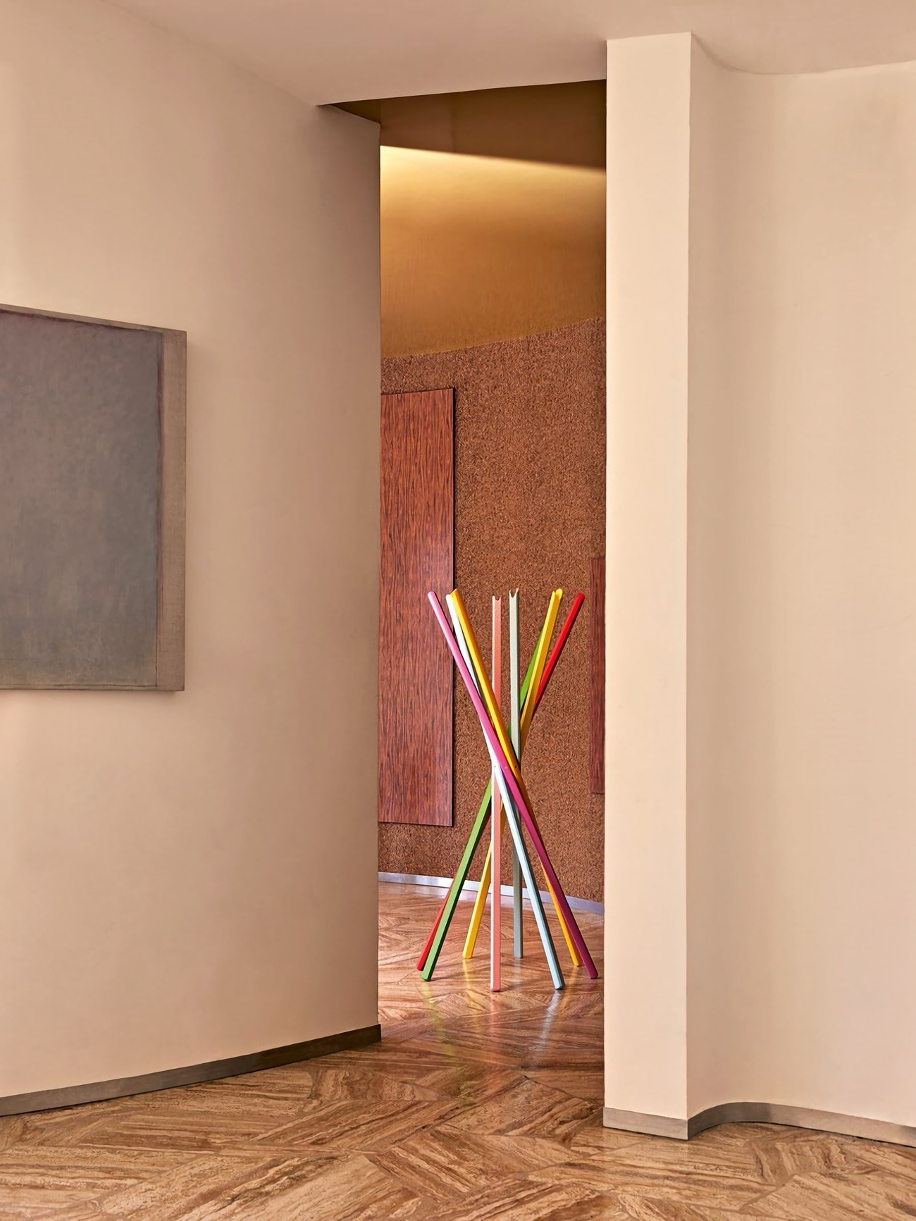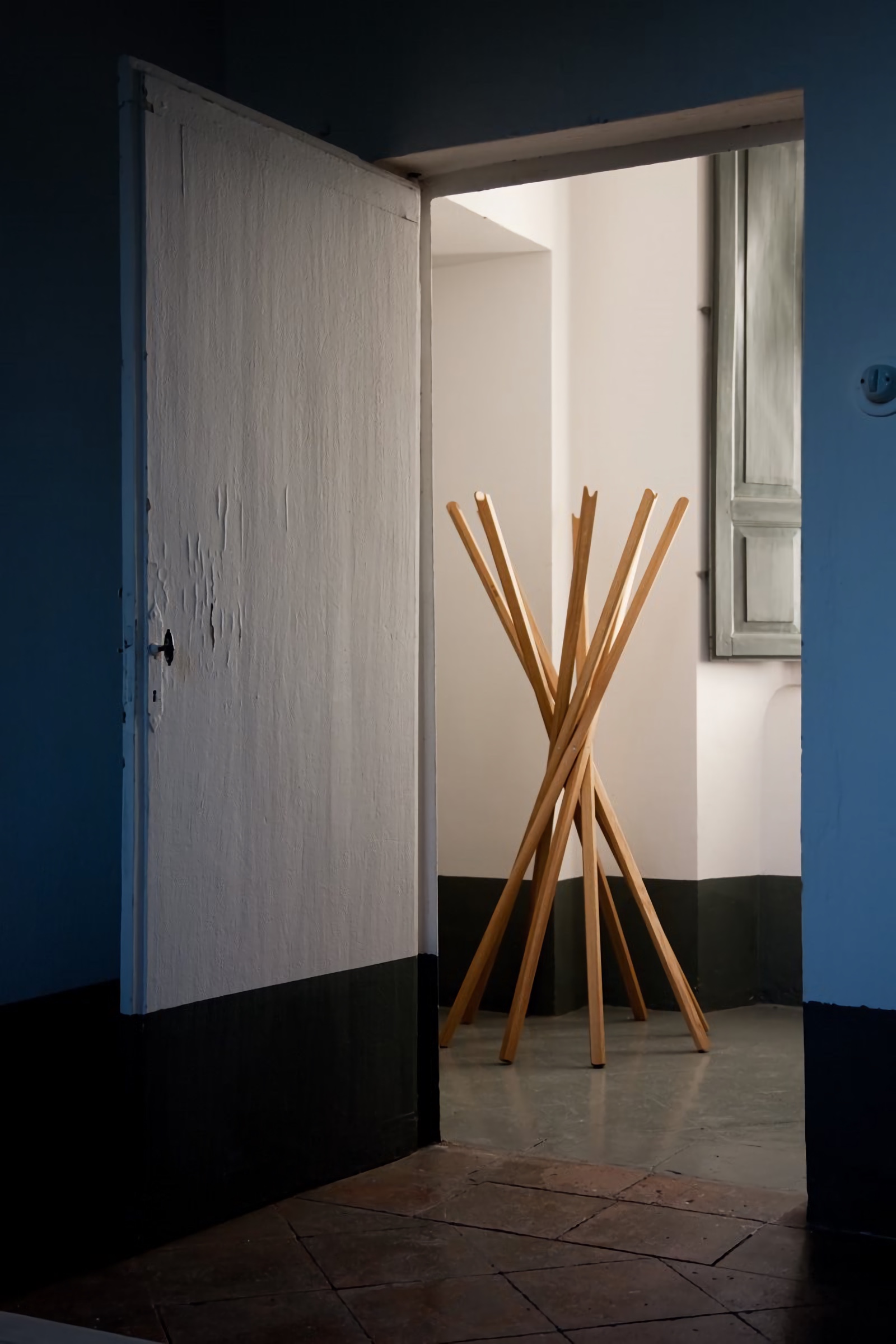 Напольная вешалка Zanotta Sciangai — аксессуар, который изменил представление о повседневных вещах. Своё название и форму вешалка получила в честь китайской игры «Mikado», в которой нужно образовывать хаотичную структуру из тонких палочек. Sciangai стала первым аксессуаром в каталоге Zanotta и за десятилетия превратилась в одну из самых узнаваемых икон итальянского дизайна, удостоенную премии Compasso d’Oro в 1979 году.